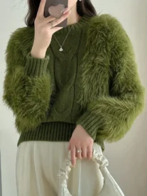 Be the first to review “Elegant Women’s Plaid Knitted Sweater with Faux Fur Sleeves” Cancel reply
