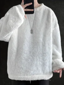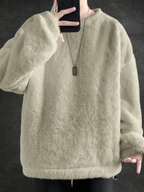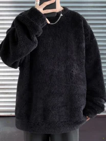 korean 1pc Men’S Casual Plush Long Sleeve Sweatshirt