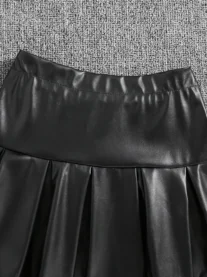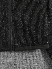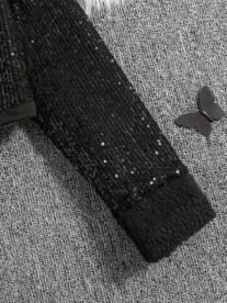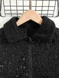 Party Sequin Jacket and Pleated Faux Leather Skirt Set with Furry Collar and Belt, Polyester, Long Sleeve, Non-Stretch Fabric, Solid Color, Fall/Winter, Woven
