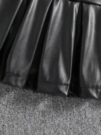 Party Sequin Jacket and Pleated Faux Leather Skirt Set with Furry Collar and Belt